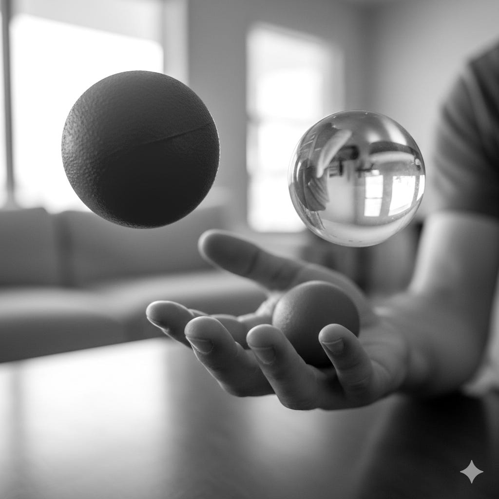 This morning was a gentle reminder to juggle the glass and let the rubber bounce. The immutable laws of physics prove that the rubber ball will return to a height where we can grasp it again. Physics also proves that glass and rubber possess drastically different properties; they do not share the same elasticity. We would do well to honor the laws of physics that have guided our universe since the days of Newton and remember, “Rubber bounces.”